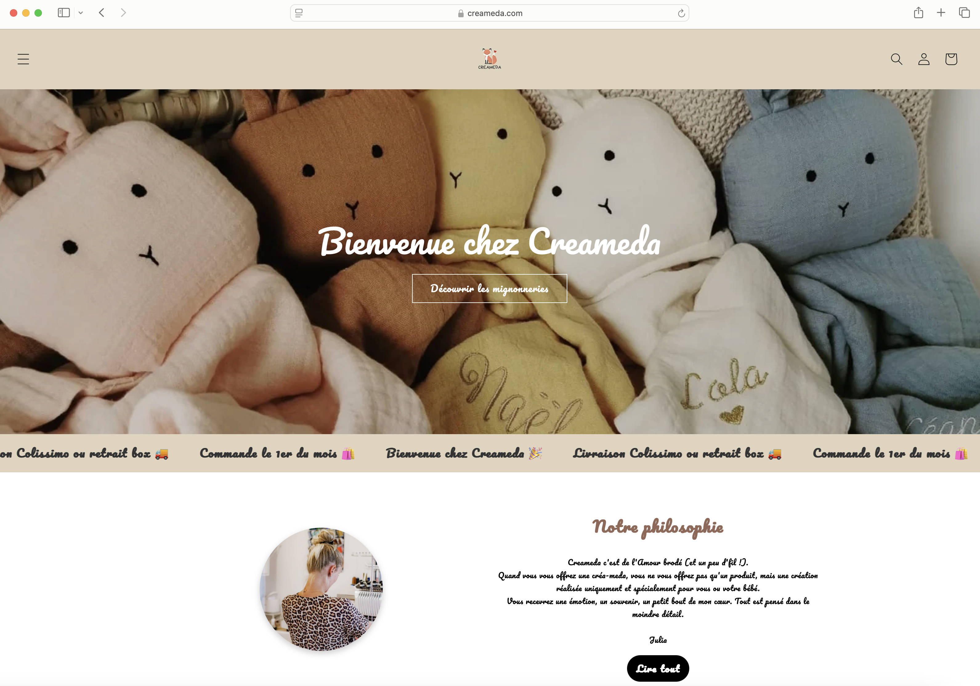 Un site vitrine pour présenter le travail exceptionnel de Julia, créatrice des magnifiques objets personnalisés. https://creameda.com/